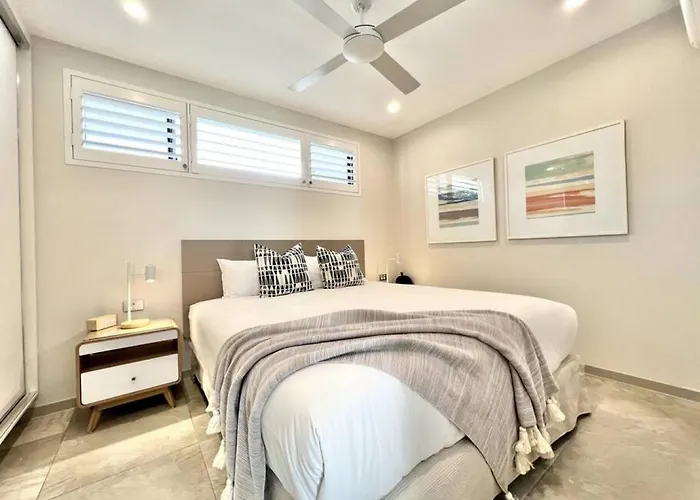 Die 100 m² große Ferienwohnung 6Apt Beautifully Renovated On Hastings Street liegt im Stadtviertel Hastings Street von Noosa Heads und verfügt über WLAN und kostenlose Privatparkplätze vor Ort. Gympie Terrace ist circa 25 Gehminuten vom Apartment entfernt, während Noosa Farmers Market circa 5 Minuten mit dem Auto von hier entfernt liegt.
